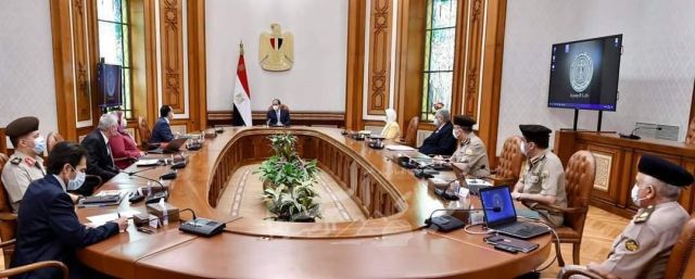 اجتمع الرئيس عبد الفتاح السيسي اليوم مع الدكتور مصطفي مدبولي رئيس مجلس الوزراء، والدكتورة هالة زايد وزيرة الصحة والسكان، والسيدة نيفين القباج وزيرة التضامن الاجتماعي، والدكتور محمد عوض تاج الدين مستشار رئيس الجمهورية لشئون الصحة والوقاية، واللواء طبيب بهاء الدين زيدان رئيس مجلس إدارة الهيئة المصرية للشراء الموحد، واللواء السيد الغالي مساعد رئيس أركان حرب القوات المسلحة لرعاية أسر الشهداء والمصابين والرعاية الاجتماعية، واللواء أ.ح أحمد الصيفي رئيس هيئة الإمداد والتموين للقوات المسلحة، واللواء طبيب مجدي مبارك مدير إدارة الخدمات الطبية للقوات المسلحة، واللواء طبيب عيد الطويل مدير مركز الطب الطبيعي والتأهيلي وعلاج الروماتيزم بالقوات المسلحة.