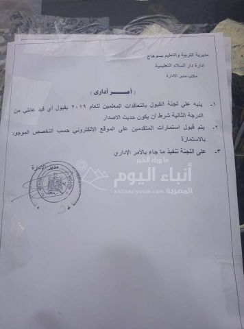ومازلنا ننفرد بعرض اخر تطورات قرار الوزراة التى كل يوم هى فى شأن اول امس اكتفوا بقبول مايثبت عمل القيد وامس الغوا القرار وتمسكوا بقبول الاوراق مستوفية واليوم الموافق ٢/١٣ قررت الوزارة الاتى :.