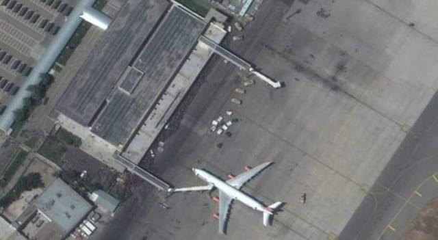 وتدفقت حشود على المطار، ومن بينهم من تعلق بطائرة نقل عسكرية أمريكية بينما كانت تسير على المدرج.