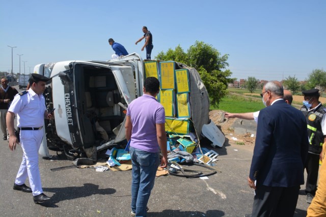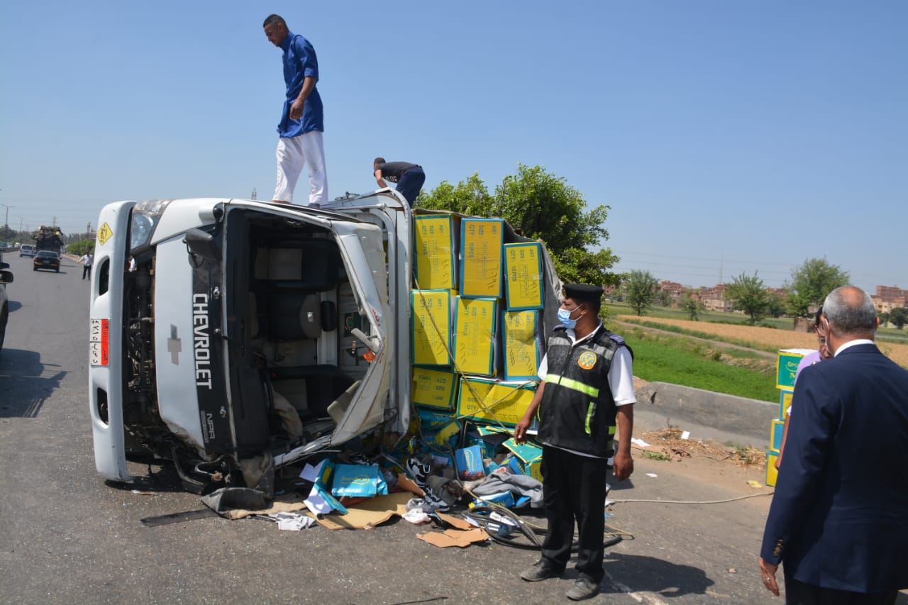 محافظ القليوبية يتوقف ليطمئن علي حادث مروري بمدينة قها بالطريق الزراعي