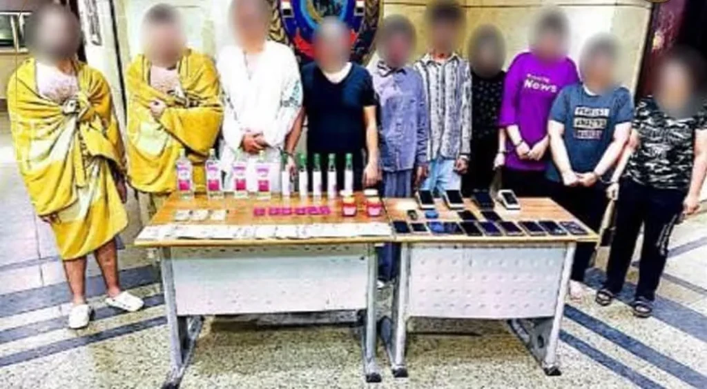 عقب تقنين الإجراءات تم إستهداف النادى المشار إليه وأمكن ضبطه وبصحبته 4 أشخاص و5سيدات إحداهم تحمل جنسية إحدى الدول"لـ3 منهم معلومات جنائية وبمواجهتهم إعترفوا بممارستهم نشاطهم الإجرامى على النحو المشار إليه.