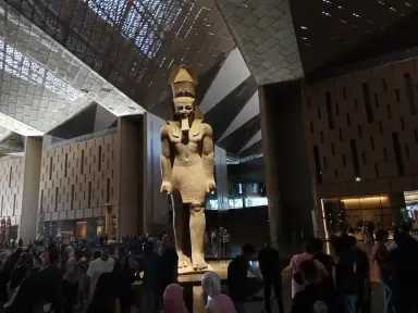 يُعرض في المتحف المصري الكبير أحد أروع وأضخم المنحوتات التي تمثل العقيدة المصرية القديمة في أبهى صورها، وهو ثالوث الملك رمسيس الثاني مع الإله بتاح والإلهة سخمت، الذي كان معروضًا لسنوات طويلة في المتحف المصري بالتحرير قبل أن يُنقل إلى مقره الجديد ضمن خطة الدولة لعرض القطع الكبرى في بيئة حديثة ومتكاملة تليق بعظمة الحضارة المصرية القديمة.