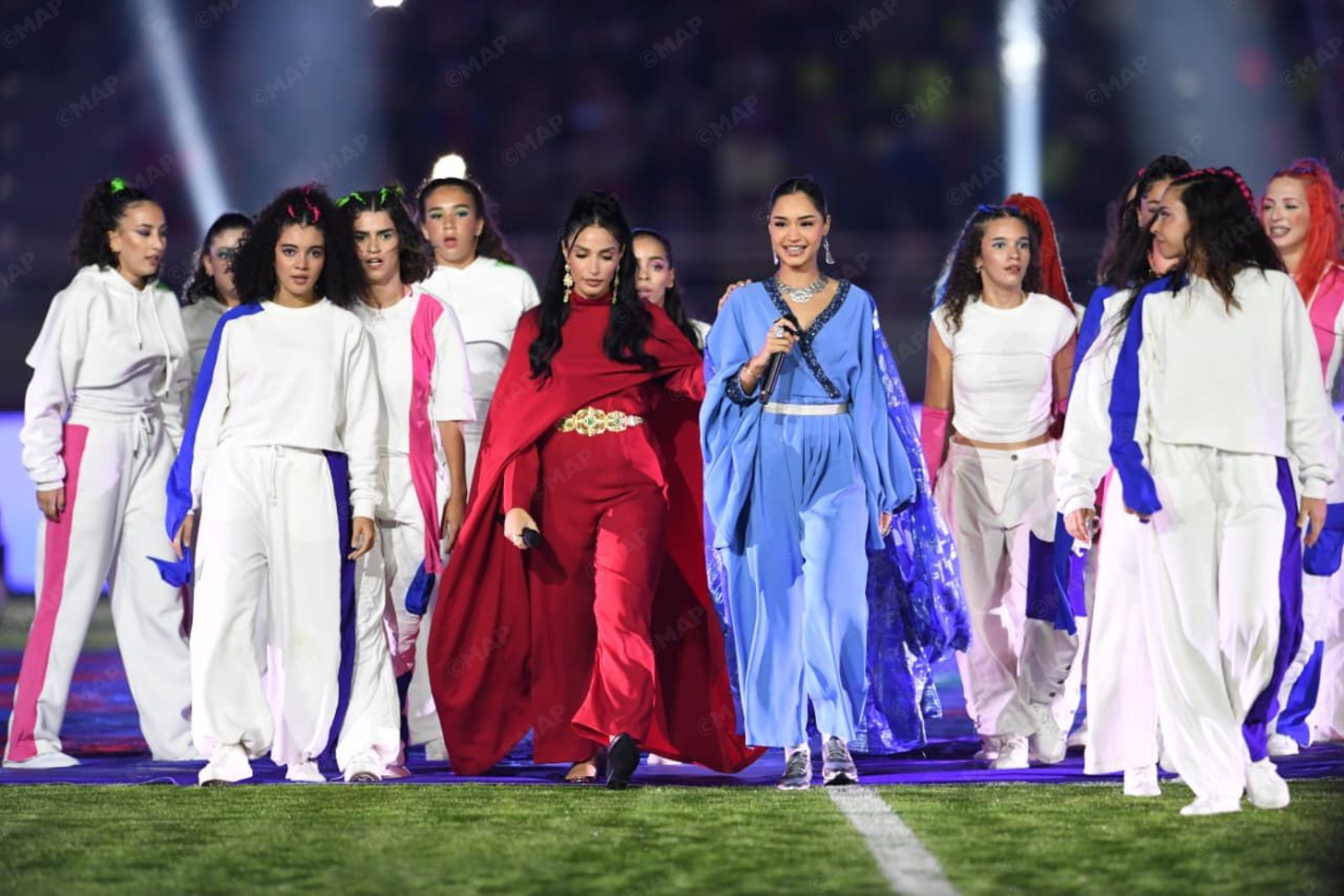 وخطفت الفنانتان الأنظار بأدائهما الأغنية على أنغام تجمع بين الحداثة و الإيقاعات المغربية الأصيلة، وكذا بإطلالتهما الأنيقة بالقفطان المغربي التقليدي، في لوحة فنية راقية جسدت روح الترحيب والاحتفاء بالمشاركات من مختلف دول العالم، لتُعلن المملكة انطلاقة بطولة استثنائية بطابع مغربي خالص.