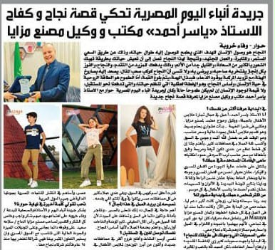 جريدة انباء اليوم المصريه تحكي قصة نجاح و كفاح الاستاذ ياسر أحمد مكتب و وكيل مصنع مزايا
