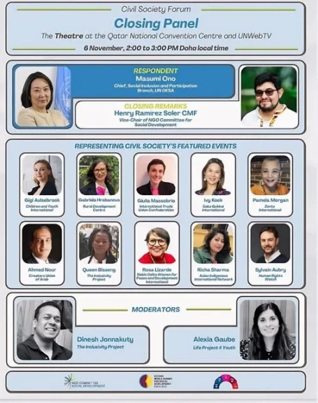 رئيس”المبدعين والإعلاميين العرب” يلقي البيان الختامي للقمة العالمية الثانية للتنمية الإجتماعية بـقطر