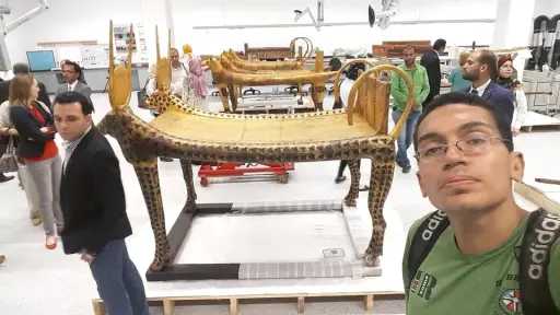 ومن أبرز الكنوز التي خُصِّصت لها العروض البصرية: القناع الذهبي لتوت عنخ آمون، الذي يُعد أيقونة الحضارة المصرية القديمة، والعجلة الحربية التي تجسد عبقرية المصريين القدماء في فنون القتال والتنقل، إلى جانب كرسي العرش الفاخر الذي يرمز إلى السلطة والخلود، ومركب خوفو الذي نُقل مؤخرًا إلى المتحف ليشكّل امتدادًا بصريًا للحضارة المصرية منذ فجر التاريخ حتى عصر الملوك الذهبيين.