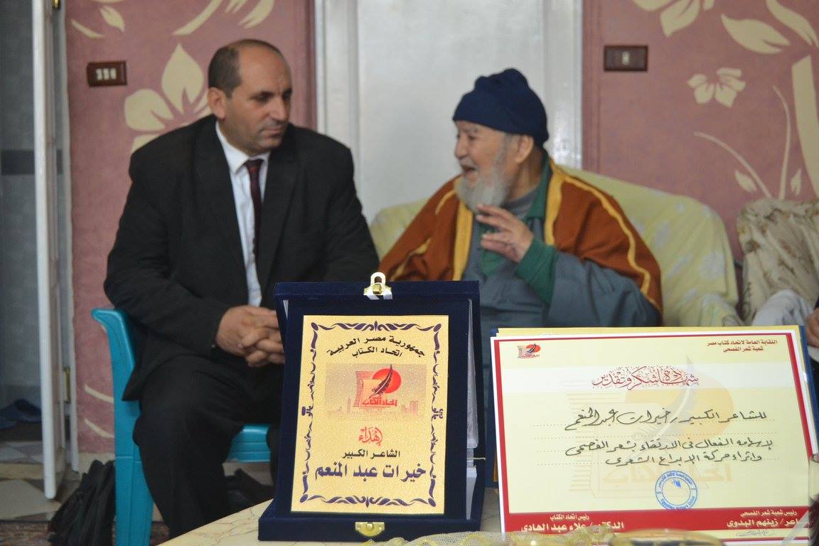 جدير بالاشارة أن الشاعر خيرات عبد المنعم حصل على درع اتحاد الكتاب المصريين تقديرا لجهوده في السّاحة الشّعرية والأدبية والثقافية.