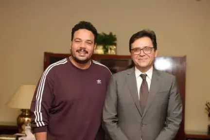أحمد فؤاد هنو، الموسيقار الكبير عمر خيرت، وسط تصفيق حار من الجمهور في عيد الثقافة المصرية برعاية السيد الرئيس السيسي.