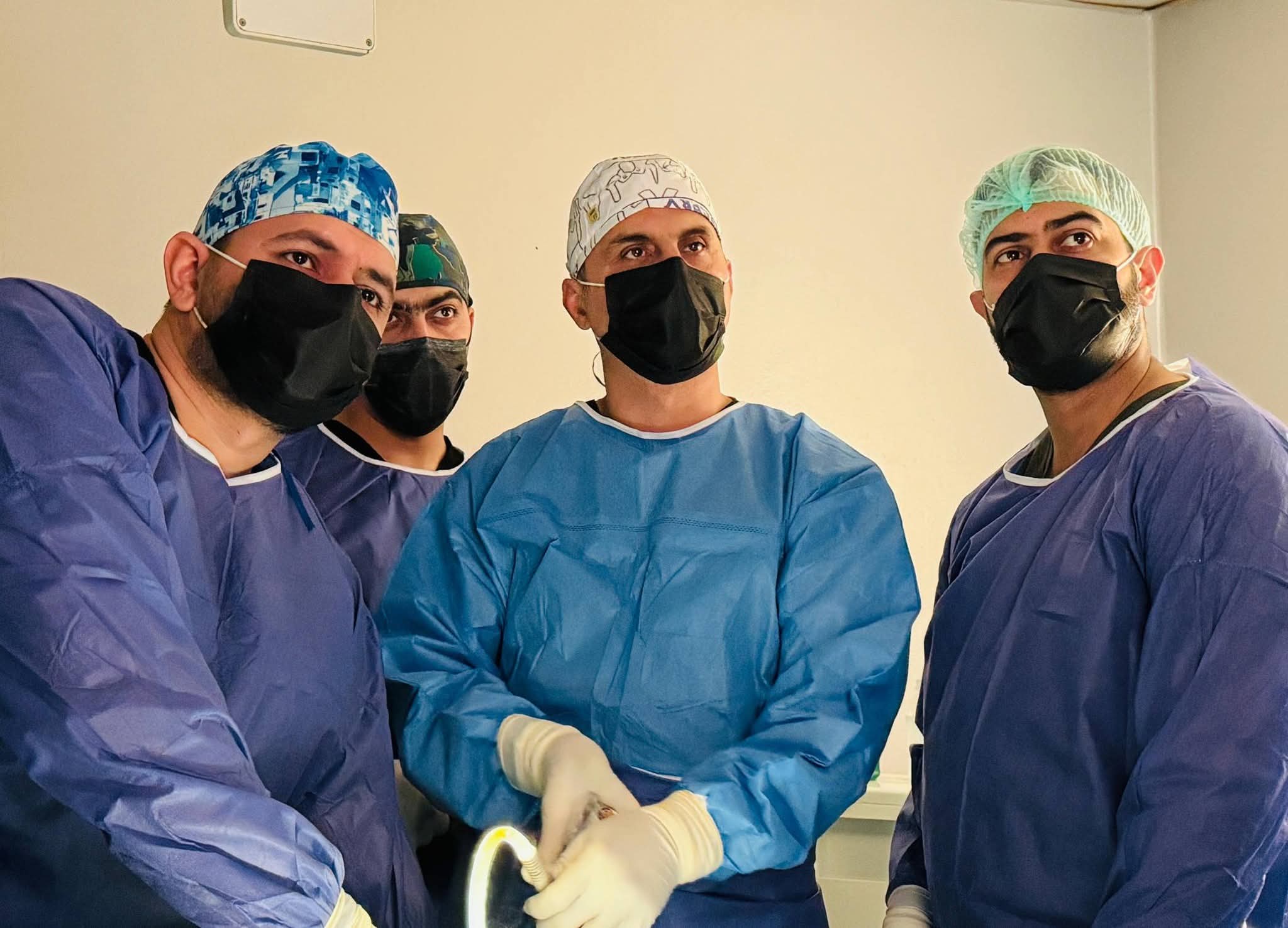 وتمت العمليات بمساندة طاقم متميز من الملاكات التمريضية والتخدير وطلبة البورد العراقي في صالة العمليات الجراحية .