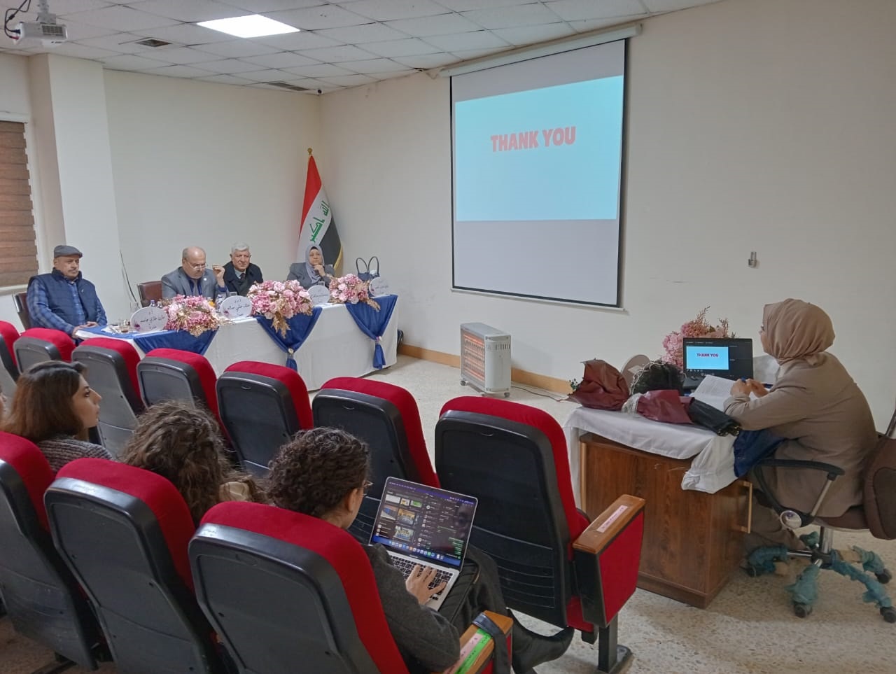 وكانت لجنة المناقشة برئاسة أ.د. يوسف عبد الرحيم وعضوية كل من أ.م.د. علاء علي صالح وأ.م.د. نادية عزيز ناصر واشراف أ.د. مازن غازي الربيعي ، وبحضور نخبة من الأساتذة والتدريسيين وطلبة الدراسات العليا .