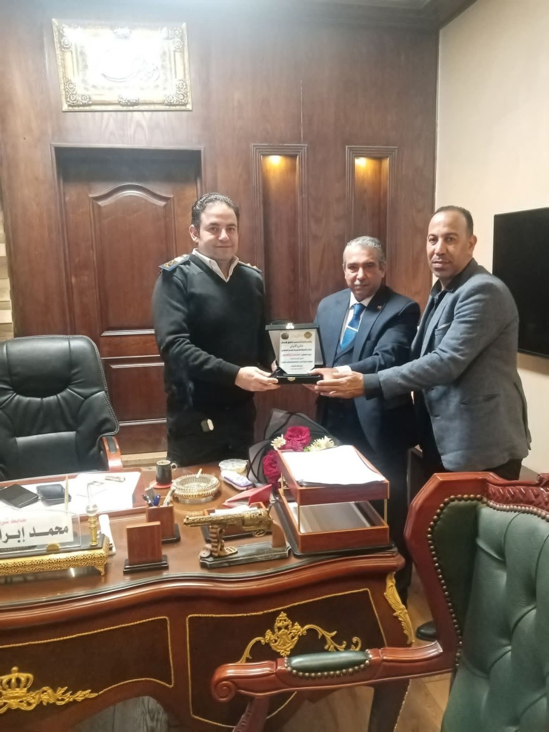 و قام رؤساء اللجان بمكتب المعادي بتقديم التهاني و الورود للسادة الضباط و المعاونين.