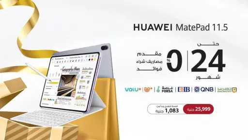 ويأتي HUAWEI MatePad 11.5 ضمن أبرز الأجهزة المشاركة في هذه الحملة، حيث يعد جهازًا لوحيًا متعدد الاستخدامات يلبي احتياجات الطلاب والمحترفين والمستخدمين اليوميين. ويتوفر الجهاز بسعر 25,999 جنيهًا مصريًا، مع خطط دفع تبدأ من 1,083 جنيهات شهريًا، مما يجعل تقنيات الجهاز عالية الأداء في متناول شريحة أوسع من المستخدمين.