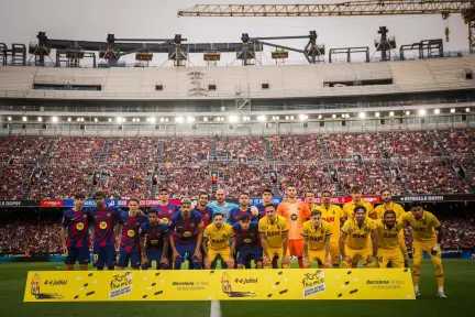افتتح نادي برشلونة التسجيل في الدقيقة 4 عن طريق النجم الشاب لامين يامال بعد تمريرة رائعة من فيران توريس.