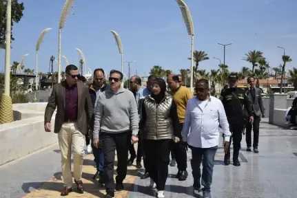 ورافق المحافظ خلال الجولة اللواء / عمرو فكري، السكرتير العام لمحافظة بورسعيد، والأستاذة / شيماء العزبي، رئيس حي المناخ، والمهندسة / زينب الجباس، مدير إدارة المشروعات، والمهندسة / رشا شريف، مدير مركز معلومات شبكات المرافق.